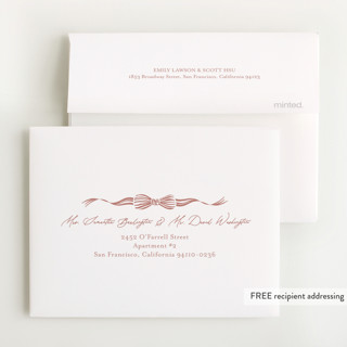- Envelope Decor: Pick from colored envelopes and even recipient addressing styles that match the look of your card (all free!). You can use Minted’s iPhone app to quickly collect addresses from your guests — as we say, this app “makes pretty, easy!” The app gives you the option to scan return addresses on cards you’ve received, as well as to request and import addresses for your sweet baby shower thank you cards. Of course, you can always choose the traditional address collection option by having a close friend jot down addresses at the baby shower.