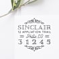 - Purchase listing and in the customization box, please include the name/names and address as you wish it to appear on the stamp. Please double and triple-check this. Fonts and capitalization will be formatted as shown in the photos.