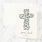 Hand drawn leaves and branches form a cross on this classic baptism invitation.