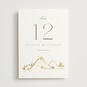 This invitation features a hand-drawn mountain in gold foil. The perfect invitation for an outdoor setup.