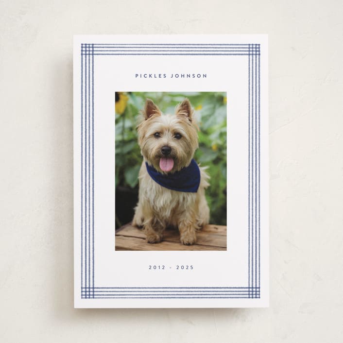 Celebrate the life of your loved one with a memorial card created by Minted’s global community of designers. All designs are fully customizable and printed on luxurious, high-quality paper. Not enough room on the front? Add a custom backer or interior to share additional photos or a more detailed message. FREE recipient address printing is available for all designs. If you have any questions or special requests, please contact us.