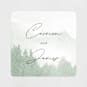 Wedding invitation with watercolor landscape of mountains and fir trees