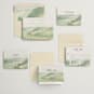 A watercolor landscape painting of trees and green hills to celebrate love.
