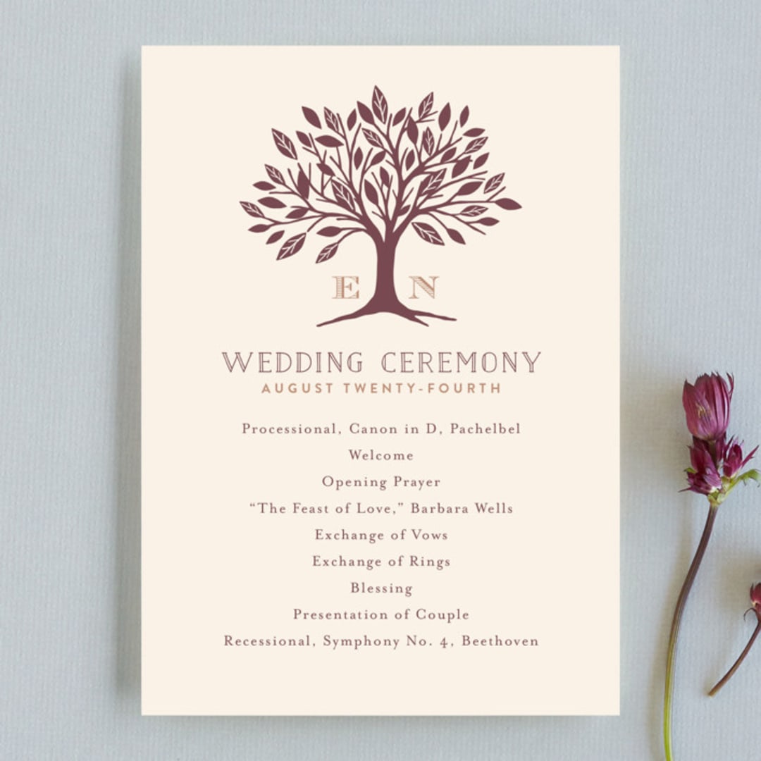 Share the details of your wedding ceremony with a beautiful wedding program printed on luxe paper. All wedding programs can be customized to match any Minted invitation design and printed in the color of your choice. If you have any questions or special requests, please email us.