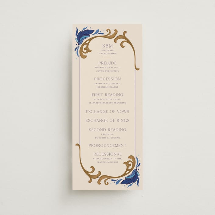 Share the details of your wedding ceremony with a beautiful wedding program printed on luxe paper. All wedding programs can be customized to match any Minted invitation design and printed in the color of your choice. If you have any questions or special requests, please email us.