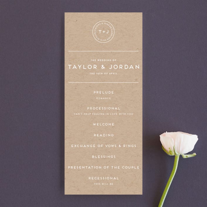 Share the details of your wedding ceremony with a beautiful wedding program printed on luxe paper. All wedding programs can be customized to match any Minted invitation design and printed in the color of your choice. If you have any questions or special requests, please email us.